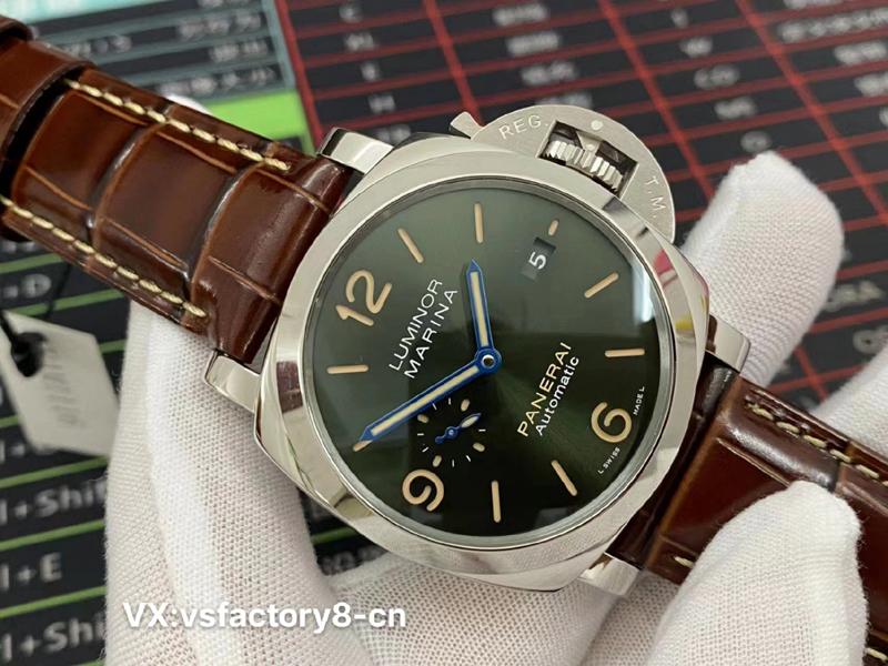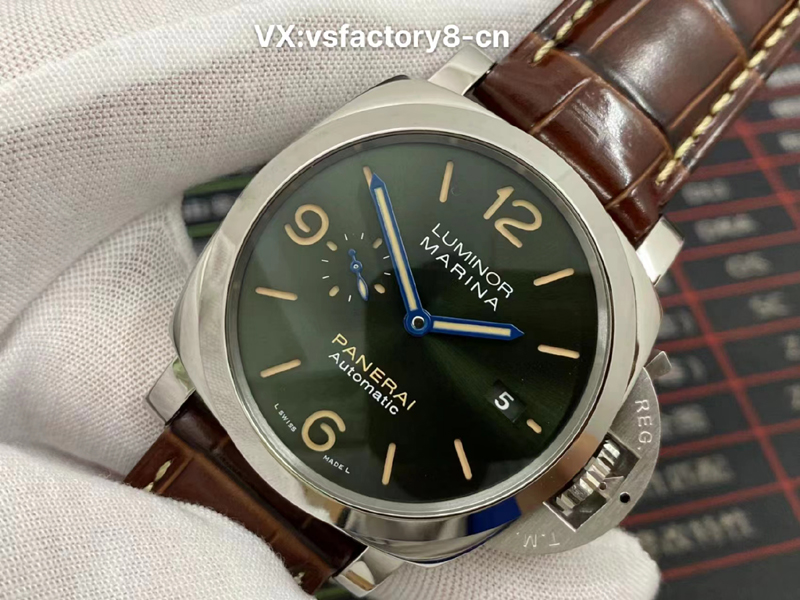 3:VS廠沛納海PAM1116作為正品沛納海的廬米諾系列中的一員,真正的還原了綠色表盤設計,圓盤的做工依然沿用VS工廠以前的經典工藝,三明治盤,隔間進口發光粉,發光明亮,盤面干凈,指針整齊,字體飽滿立體,搭配藍鋼指針以及米黃色的夜光涂料,多彩的設計更能鮮明的映入在佩戴者眼簾,完美還原了正版該有的細節做工!