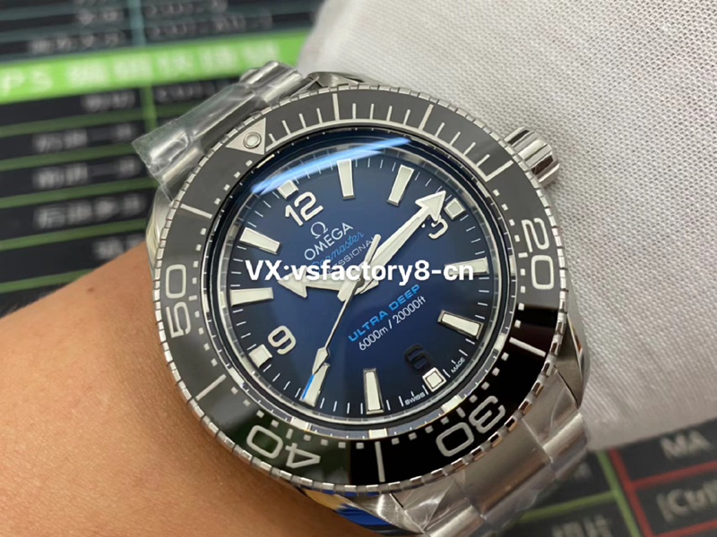 2:VS廠歐米茄漸變藍海王海馬600米復刻版在外觀上十分注重細節的還原,表殼采用了316L精鋼材質,經過精密打磨,表面光滑而富有光澤,表殼的厚度和重量與正品相差無幾,給人以扎實的佩戴感受,表邊的倒角處理細膩,展現出天花板復刻手表的精致工藝。