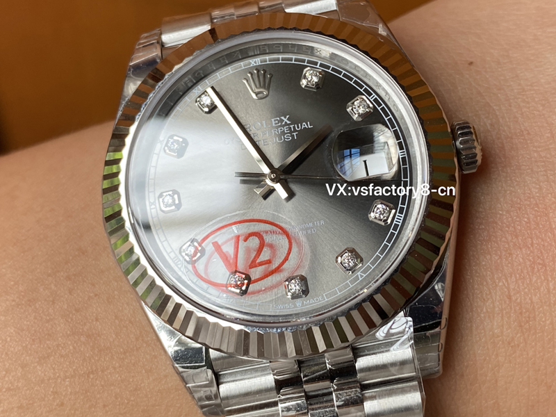 4:VS廠勞力士41mm灰鉆日志復(fù)刻表最大的亮點(diǎn)在于其表盤還原設(shè)計(jì),VS廠不懈努力的努力調(diào)校,也終于成功達(dá)到了的原版一致放射灰面還原,其無色差現(xiàn)象,灰色的表面與閃爍的鉆石時(shí)標(biāo)形成鮮明對(duì)比,提升了整體的視覺效果,表盤刻度搭載了臺(tái)灣進(jìn)口莫桑鉆,閃亮無比,盤面英文印刷細(xì)節(jié)處理的很到位,指針打磨圓潤,實(shí)心中軸,十二點(diǎn)大皇冠LOGO立體感非常強(qiáng)烈,展現(xiàn)了VS廠的超高復(fù)刻技術(shù),做到了原汁原味。