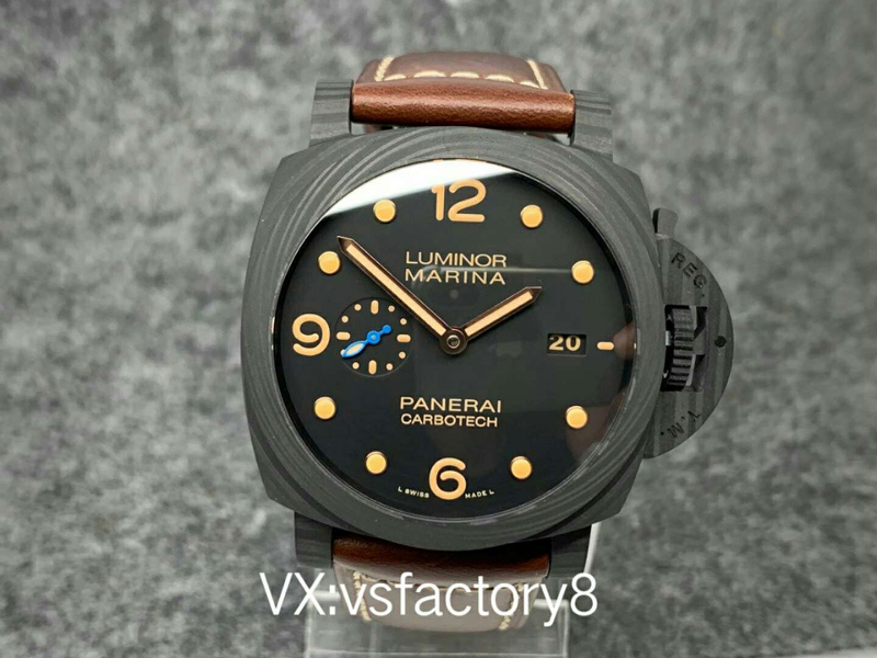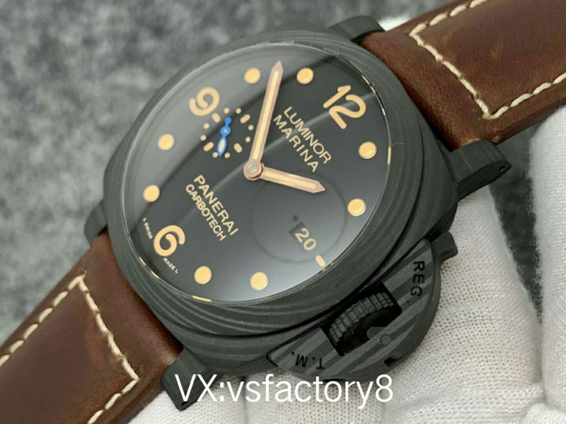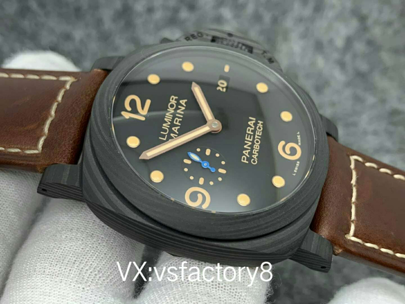 VS廠沛納海PAM661碳纖維殼,全新表殼工藝,7層碳纖維更為致密,44mm 最新版P.9010自動機械機芯,碳纖維表殼,藍寶石鏡面,夜光表盤和指針,牛皮表帶,針扣,防水大于100米!