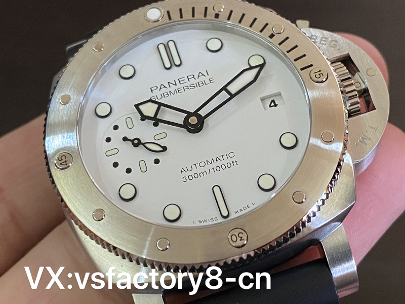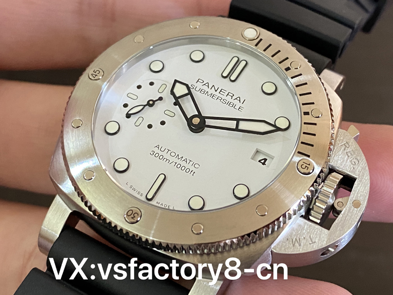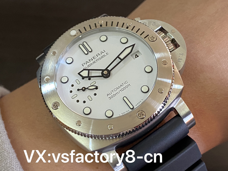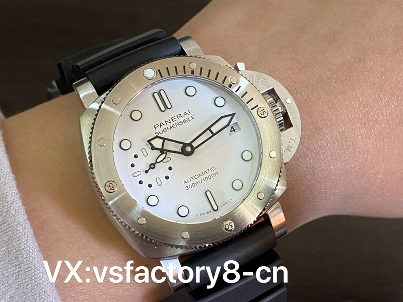 2023年VS廠手表官網新款:VS廠沛納海復刻表PAM2223,直徑42毫米,白色表盤搭配黑色表帶,沿襲潛行系列標志性設計及性能,適配露營、遠足、登山、深潛等各種場景;