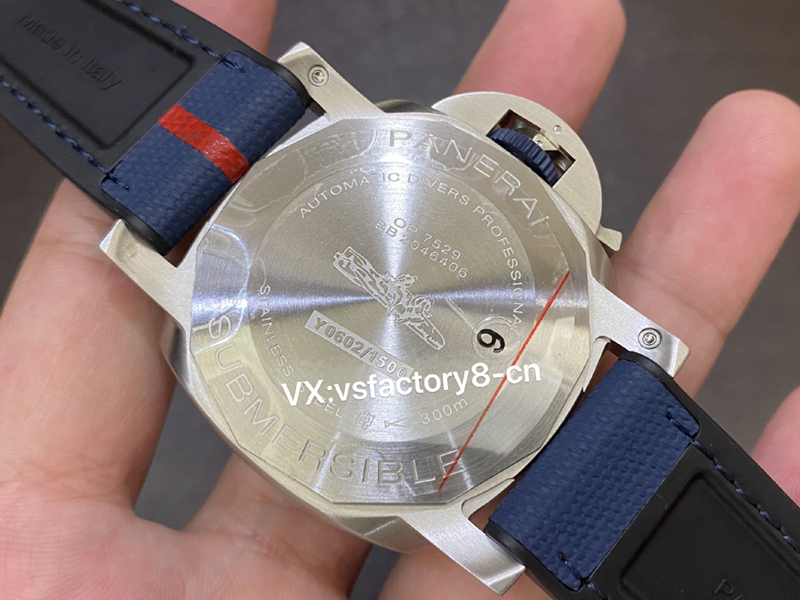 此次VS廠沛納海1391復(fù)刻版44毫米新的潛行腕表,都在在日期窗口做了一個(gè)細(xì)節(jié)升級(jí),不是原來的盤面開口,而是做了內(nèi)凹倒梯形窗口,優(yōu)化過后日期數(shù)字顯示更清晰。