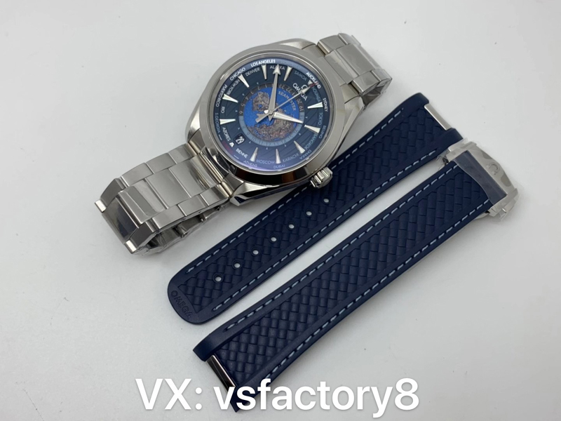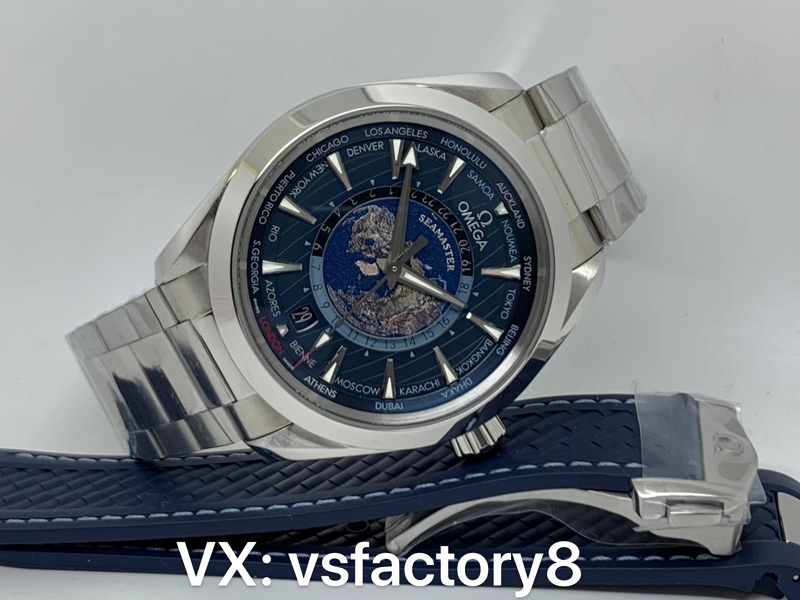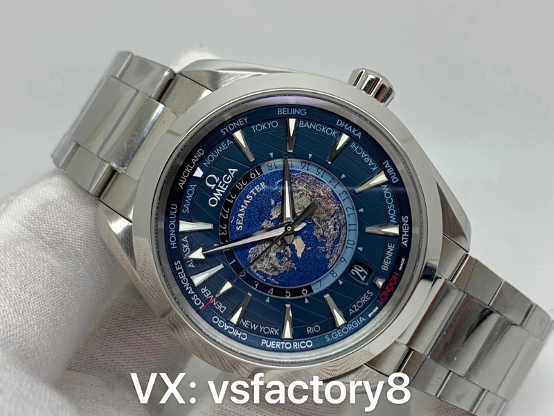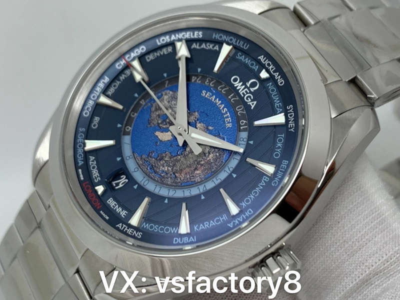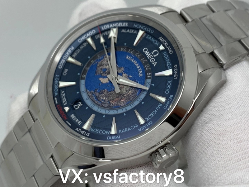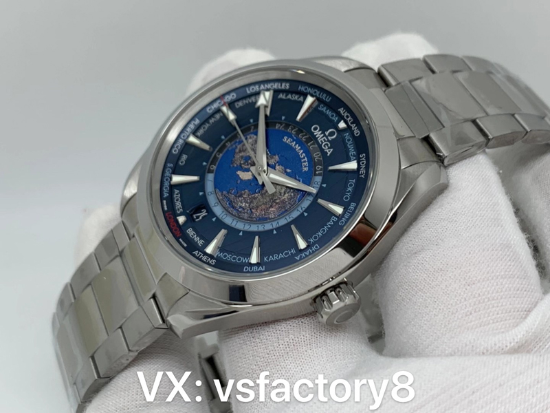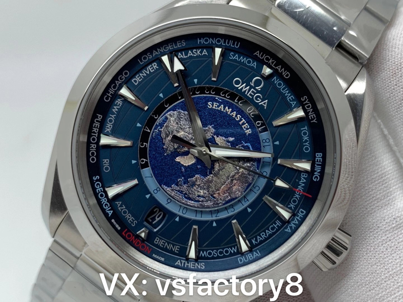 VS廠(chǎng)歐米茄藍(lán)面世界時(shí)海馬150米43MM Aqua Terra 世界時(shí)復(fù)刻腕表。