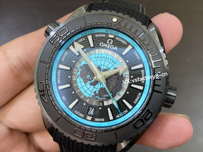 VS廠手表官網2025年七月份推出新款歐米茄陶瓷蒂芙尼藍世界時海馬600米復刻表215.92.46.22.01.006出貨!