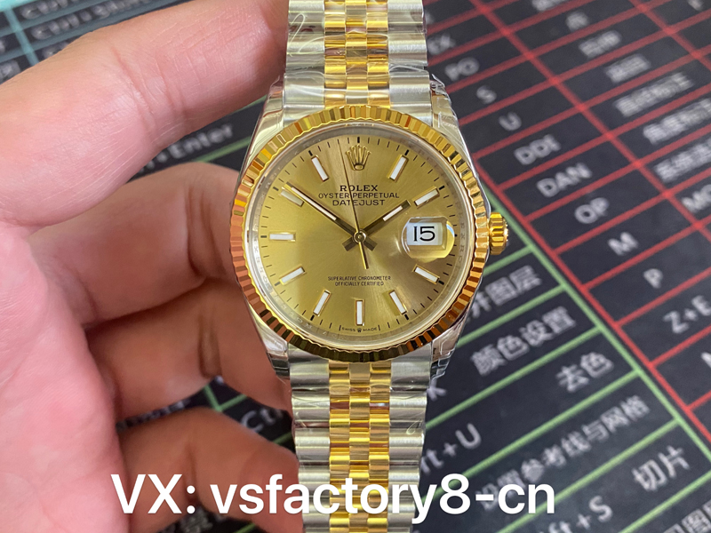 VS廠手表官網(wǎng)2023年新款:VS廠復(fù)刻表勞力士日志間金五珠鏈丹東3235機(jī)芯36日志型DJ;