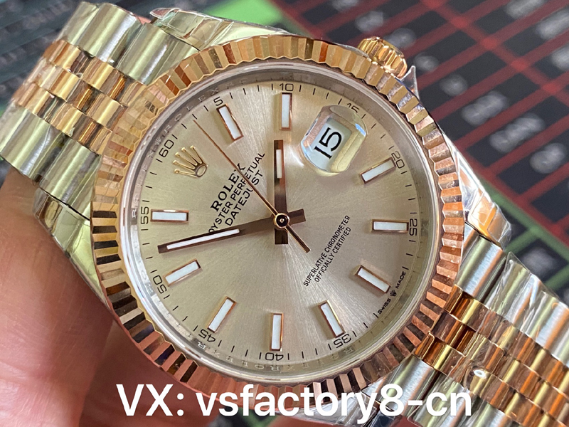 VS廠勞力士香檳色日志41M“面”好,表盤太陽紋清晰細膩,淡雅光澤,隱約而獨特,隨著手腕擺動顯不同光澤,VS廠行業新突破:表盤底色不會泛霧顯白。