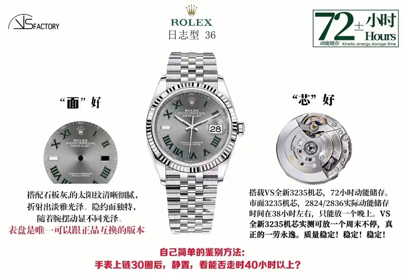 VS廠綠蘿日志型DJ專用丹東3225機(jī)芯,唯一72動能儲存版本,而且質(zhì)量穩(wěn)定,幾乎不用返修售后。