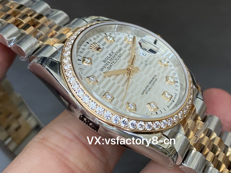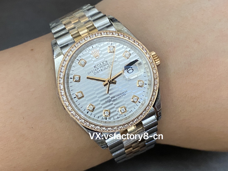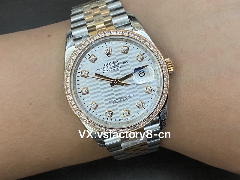 2024年VS廠四月份全新推出新款勞力士日志型系列m126281rbr-0027,也是VS廠首次推出鉆圈鉆面勞力士銀水紋日志丹東3235機,對于表圈VS工廠采納的是臺灣莫桑鉆,還原了正品一致。