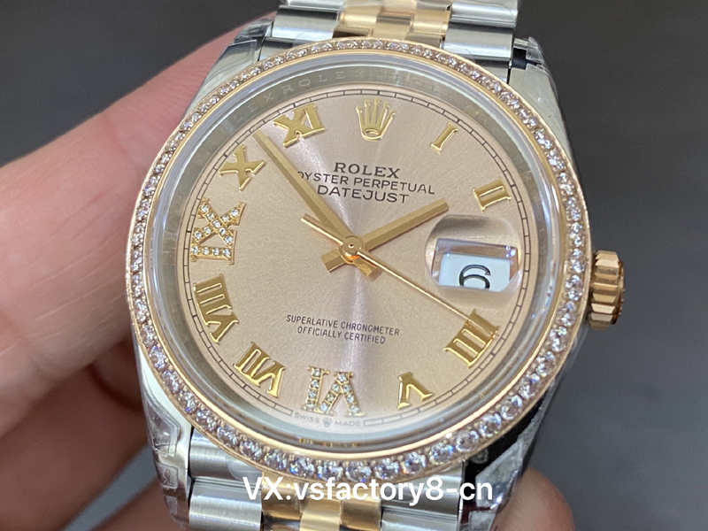 VS廠勞力士日志鉆圈粉面全面按照正品同步一致,并且實施了六點位置和九點位置都跟正品一致采納鉆石,當然VS工廠用的是臺灣莫桑鉆,并一比一羅馬數字,不再一眼假和露破綻!