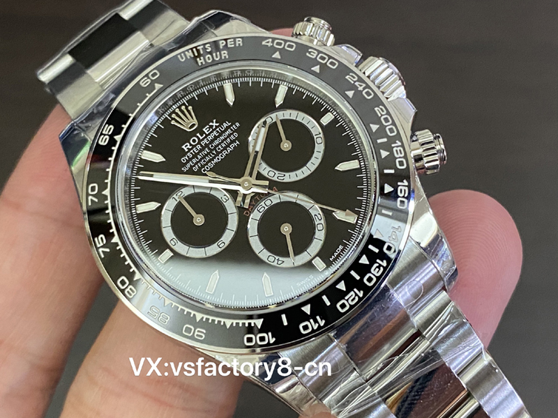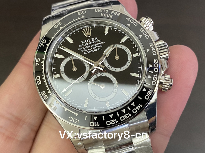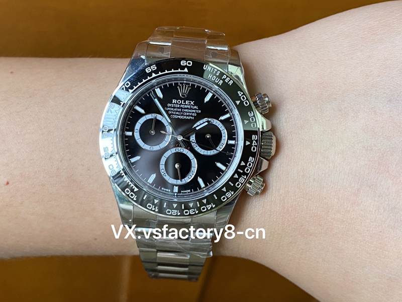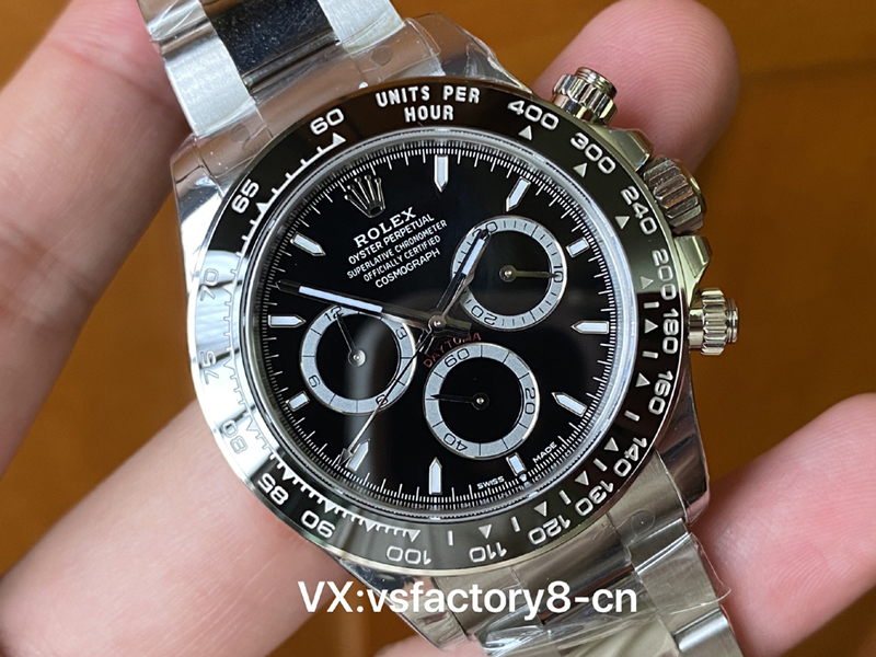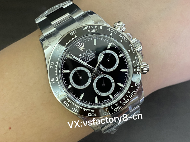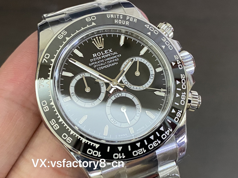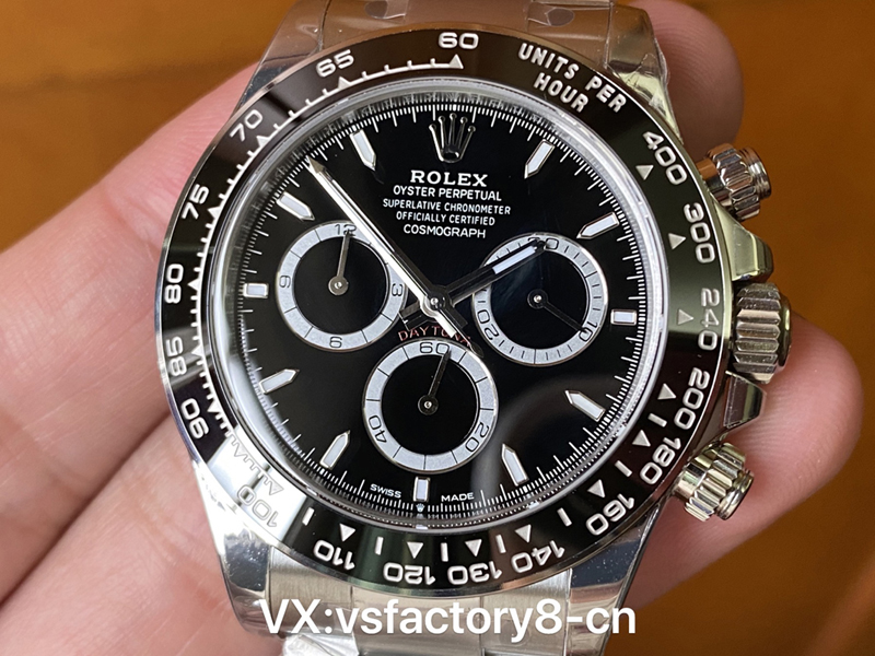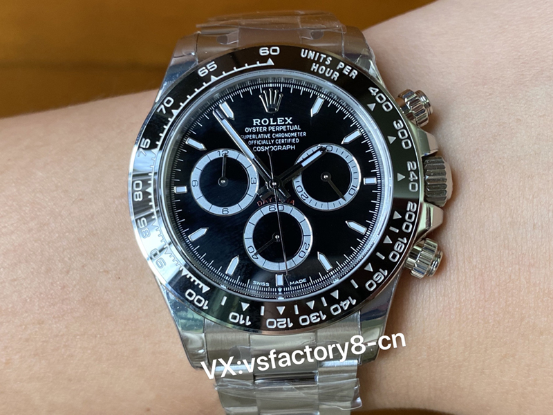但是VS廠勞力士迪通拿黑陶迪提供的4只真品,我們發(fā)現(xiàn)了幾個(gè)問(wèn)題,例如字釘?shù)膱A潤(rùn)度存在差異,指針有使用老款的錐形管頭,所以勞力士官方可能在清理4130機(jī)的庫(kù)存。