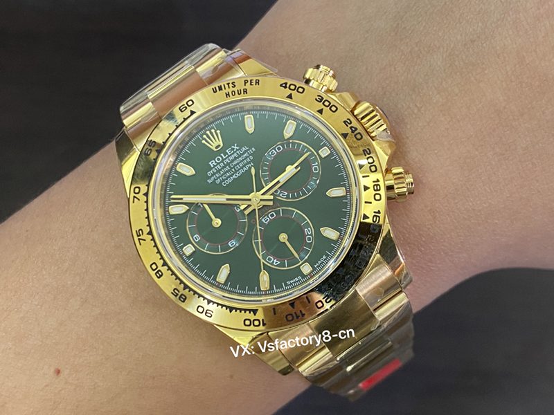 VS廠官網2024年十二月新品勞力士迪通拿綠金迪4130機芯,腕表直徑40mm ,搭載丹東Cal.4130專有機芯,既要機芯穩定,又要細節到位的版本。