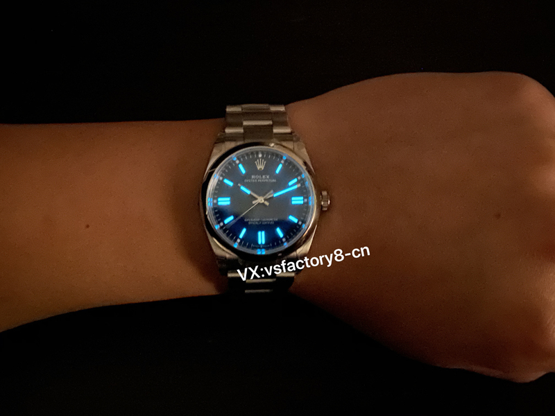 勞力士蠔式恒動藍面36mm的夜光粉使用原廠sl blue夜光粉,所以伴隨粗糙以及黑點到特殊性。玩過或者見過的表友應該都不會太陌生。