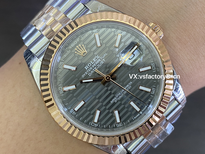 2023年VS廠復(fù)刻腕表新款勞力士41m間玫瑰金石板灰水紋面日志復(fù)刻表m126331-0020丹東一體3235機(jī)芯出貨!